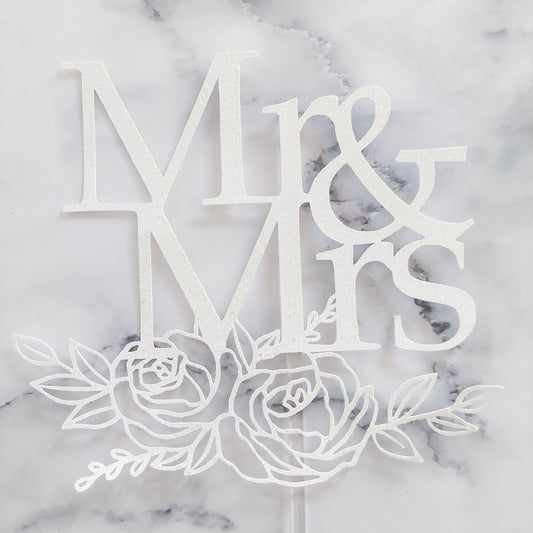 Floral Mr & Mrs Card Cake Topper